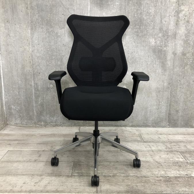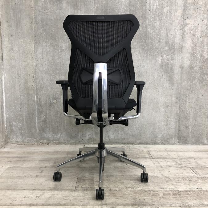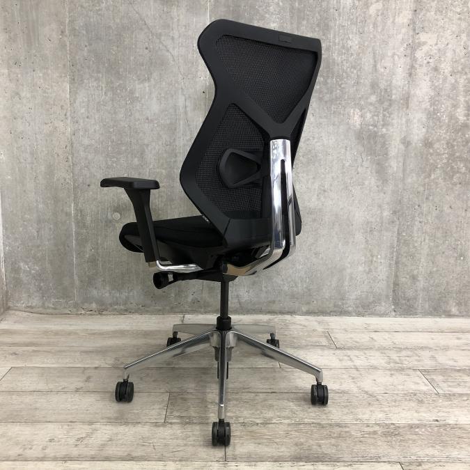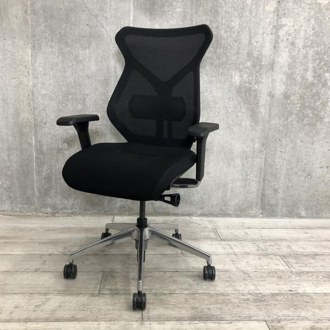【2018年製】イトーキ製 セクア ブラック 肘付き ハイバックチェア 背面メッシュ アルミミラー脚アジャスタブル※可動肘 ランバーサポート・ヘッドレスト付 理想的な姿勢を追求した特徴的なデザイン! 座り心地も快適なハイバックチェアの入荷 肘付きハイバックチェア!!
