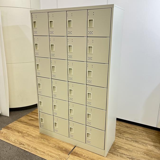 【1台限定!扉付きの多人数用シューズボックス!!】シューズボックス ニューグレー 24人用 扉付き 鍵なし 中古 ホワイトシート貼り- なんば日本橋店