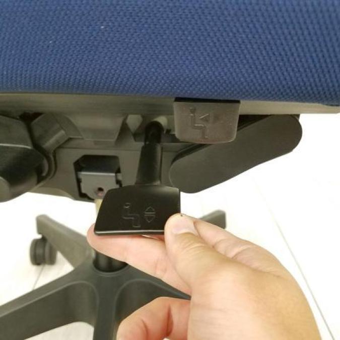 - 座面下のレバー操作により、座面を50mmのストローク(16.7mmピッチ)で好みの位置に調節できます。体格や作業姿勢に合わせたポジション設定が行えます。