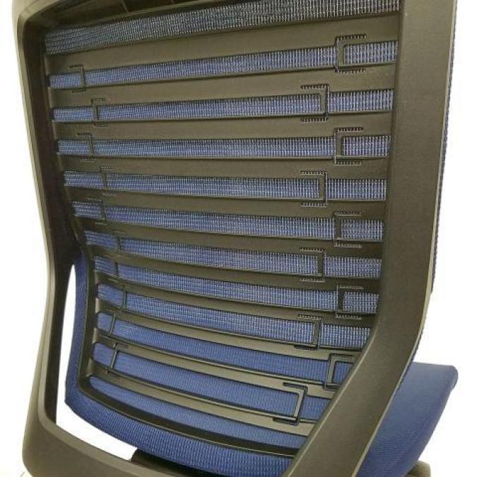 樹脂製のラダー構造の背シェルは、姿勢の変化に合わせてフレキシブルに変形。