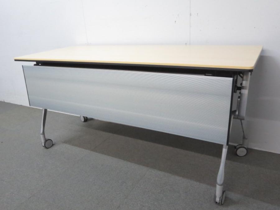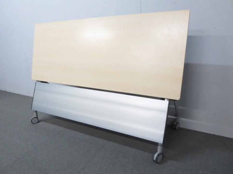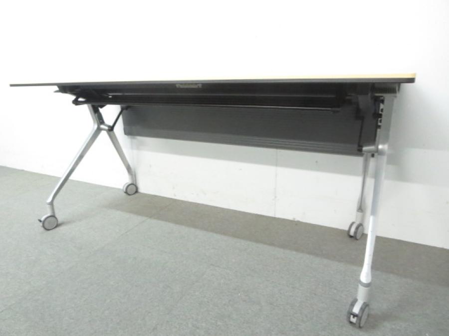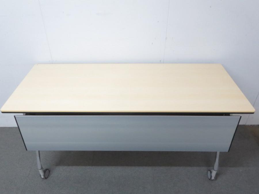 【4台入荷しました!】■オカムラ サイドフォールドテーブル W1800×D600mm 幕板パネル付 ■いま人気の木目カラー!- なんば日本橋店