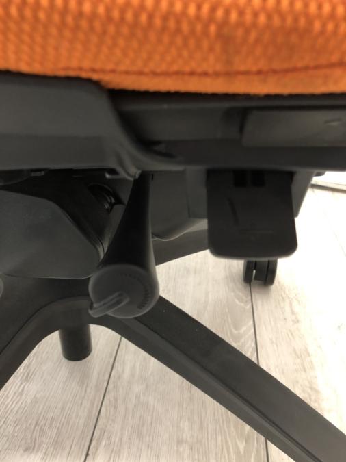 座面下のレバー操作により、体格に合わせたポジショニング設定が座った状態で可能になりました。