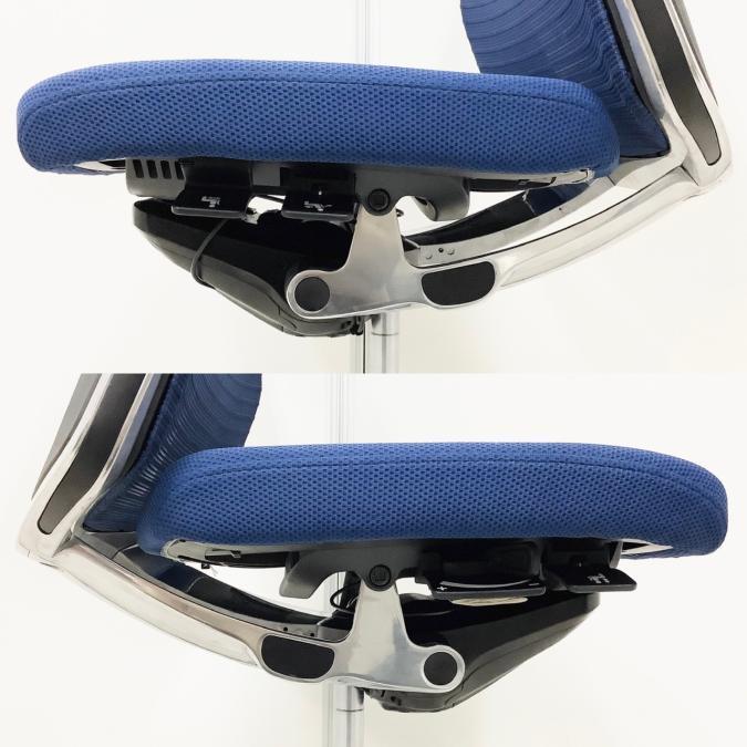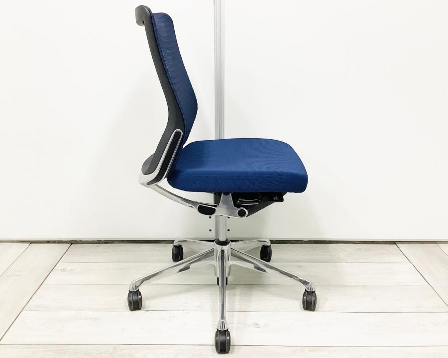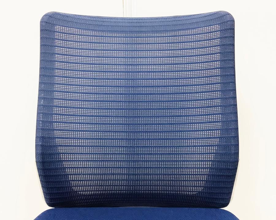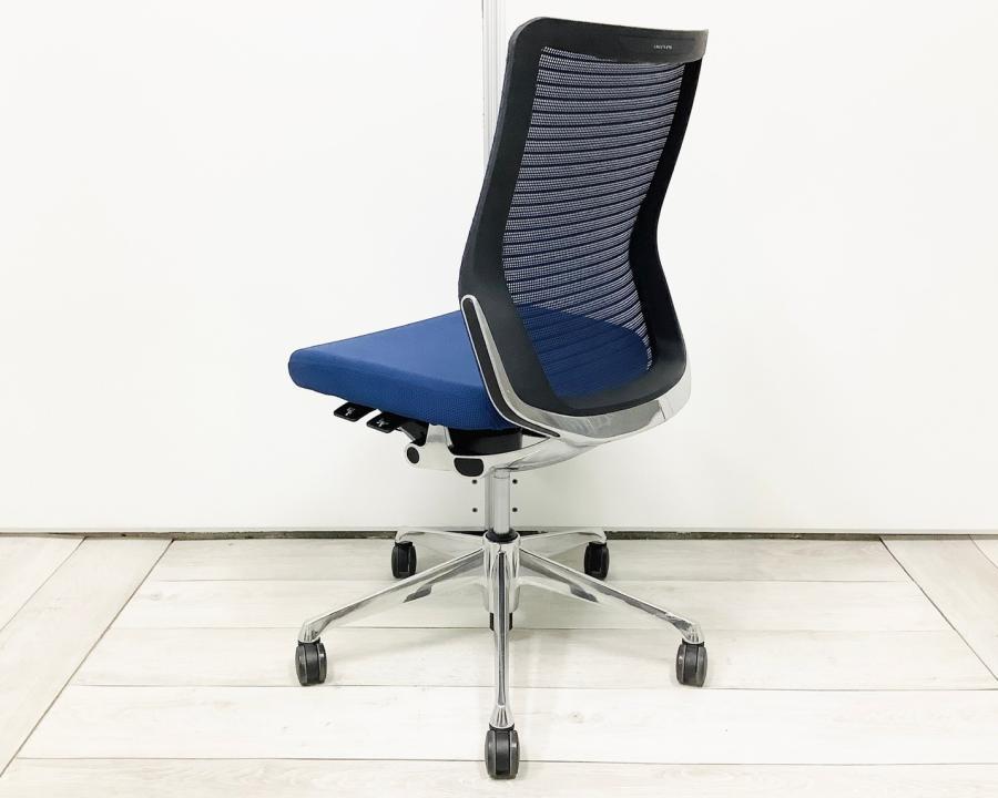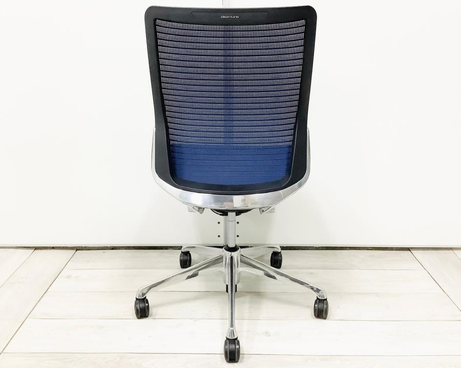 【機能性抜群の人気チェア!自然な姿勢をサポートするアンクルチルトリクライニング搭載!】■オカムラ(okamura)製 コーラルチェア(Choral) 肘無ミドルバックチェア 背面メッシュ ■ランバーサポート・コートハンガー付き ■ブルー×ブラックシェル【入替セールにつき20%OFF!】