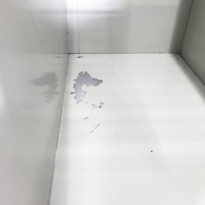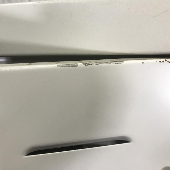 - かなり強い黄ばみ・変色が商品全体にある。(例、天板、正面、背部、サイド部分にある。)