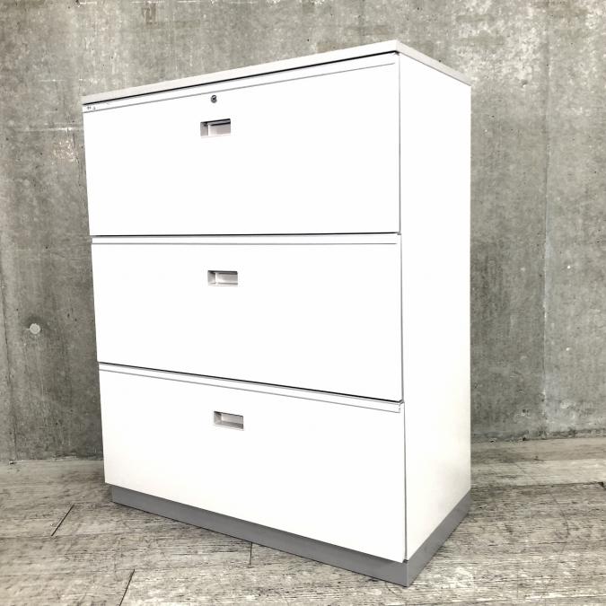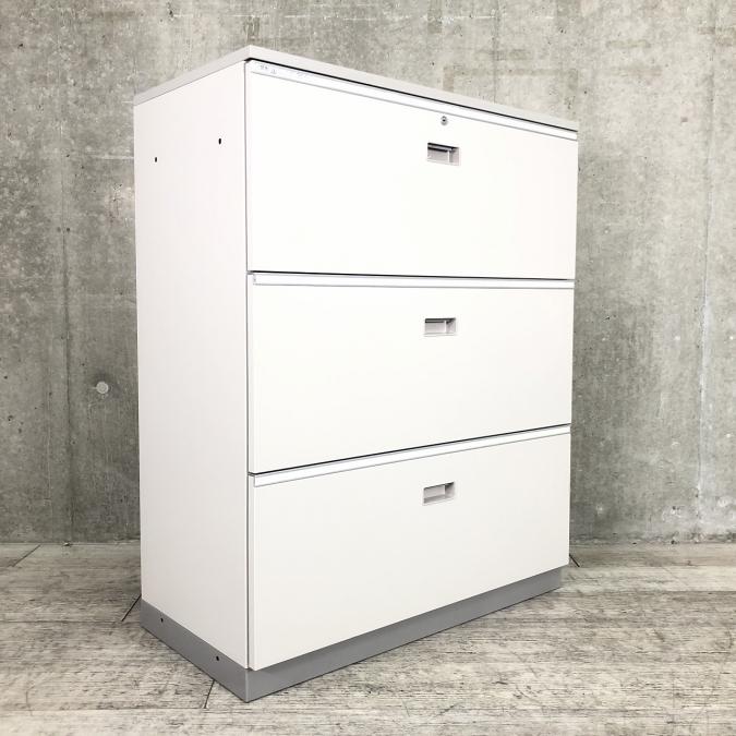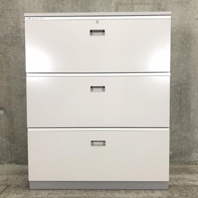 【4台限定在庫入替セール品】イトーキ製の定番書庫!人気の引き出し(ラテラル)タイプになります! イトーキ シンライン ホワイトグレー 3段ラテラル 天板付き