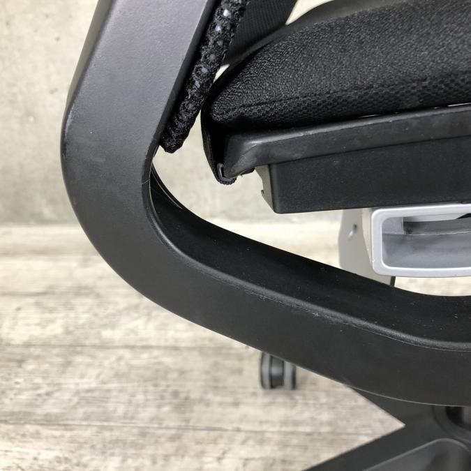快適な座り心地に不可欠な調節機能である、上下昇降、座面の奥行き調整、リクライニングなどを備えており、操作もわかりやすく好評です。 特に、座面の奥行きは、座面下の左右に通った細いバーで調整でき、座ったままで軽やかに滑るように調整が可能です。 価格面では、新品では高めですが、中古は流通も多く、定価の3割前後の価格で高級チェアの座り心地を手に入れることができます!