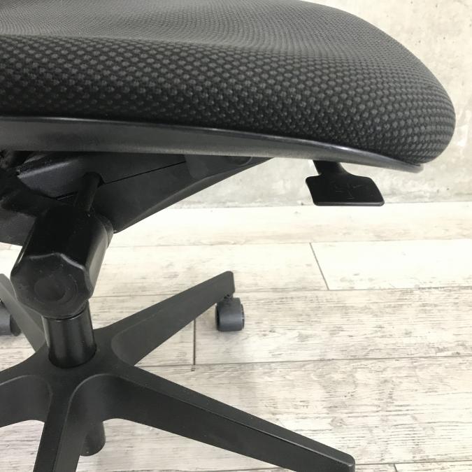 例えば、座面は、イトーキ独自の"ベンディングシート"という機構により、クッション、インターシェル、空洞という三層構造になっています。 この真ん中に挟まっているインナーシェルが、着座時の姿勢に合わせて体重を分散してくれるので、どんな姿勢でも体になじみ、疲労を軽減してくれます。 さらに、座面は前後に4センチほど奥行きを調整でき、前傾姿勢で座りたい、深く腰掛けたい、膝裏を圧迫されたくないなど、個人の好みに合った快適さにカスタマイズが可能となっています。