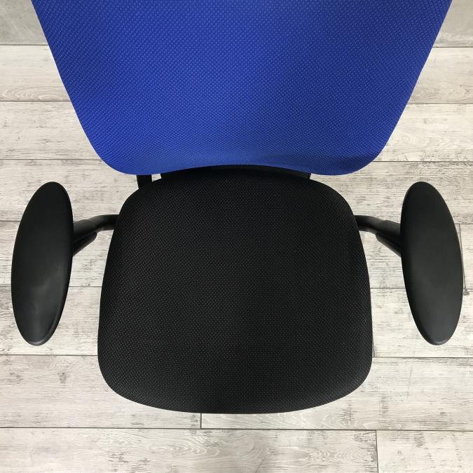 【一人ひとりにマッチする座り心地!ミドルクラスの定番チェア!】■イトーキ(ITOKI)製 プラオ(PRAO)チェア 肘付ハイバック ■ストロングブルー×ブラックシェル ■可動肘(ソフトパッド) ■ランバーサポート付き