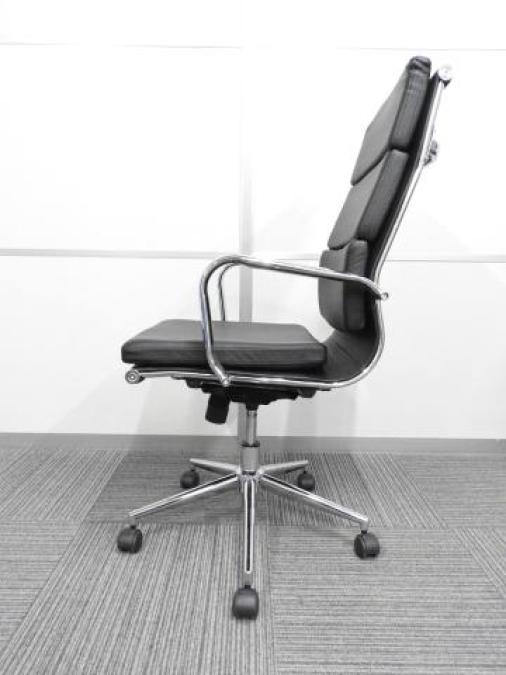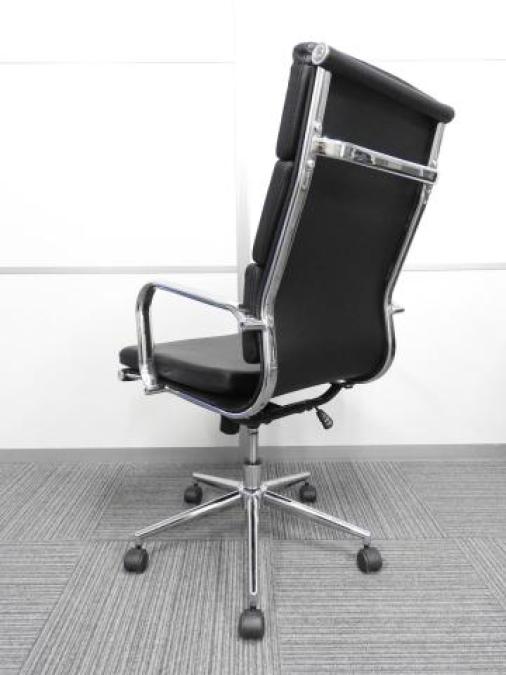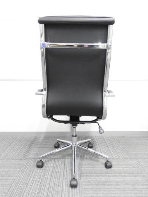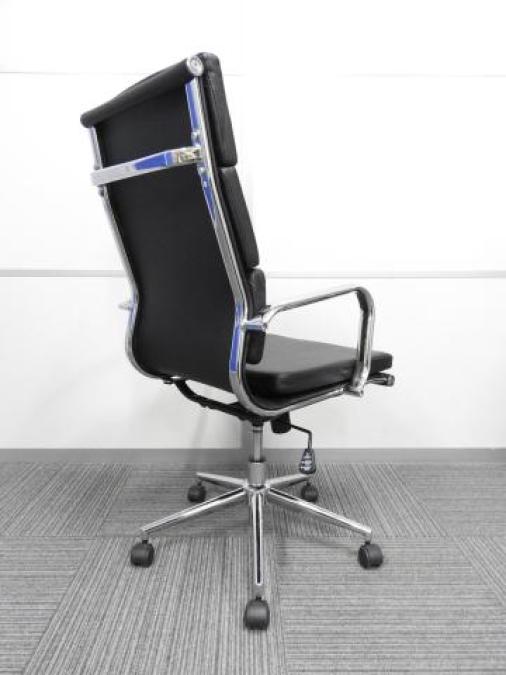 【ブラック×ポリッシュの上品デザイン!】■マネジメントチェア ハイバック 革張り- 川崎店