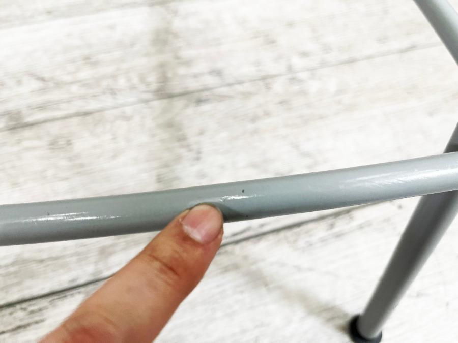 - かなり強い濃い黄ばみ・変色が商品全体にある。(例、座面・背もたれ、脚部等にある。)