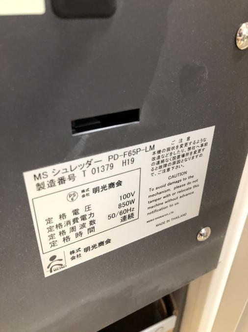 【ハイスペック!現行モデル入荷!】■明光商会製 業務用シュレッダー PD-F65P-LM 最大65枚細断可能! データメディアにも対応!【RP】- 埼玉本店