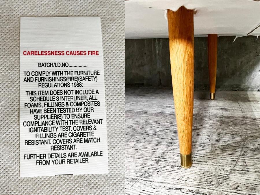 - かなり強い濃い黄ばみ・変色が商品全体にある。(例、座面・背もたれ、脚部等にある。)