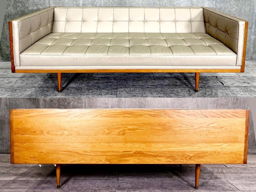 ウォールナットフレームに本革張りでの販売価格は日本円で約100万ほどの価格となるソファです。