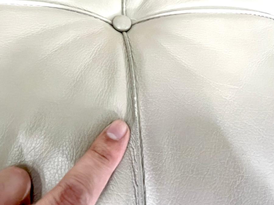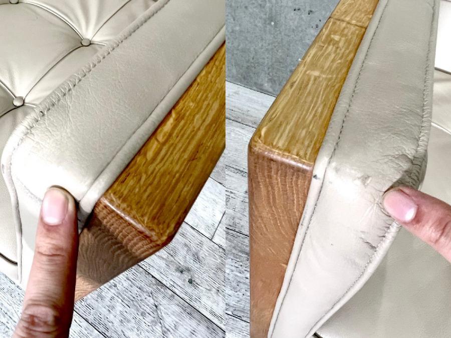 - あり黄ばみ・変色が広い範囲にうっすらある、または濃い黄ばみ・変色が一部ある。(例、座面・背もたれ、脚部等にある。)
