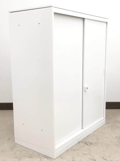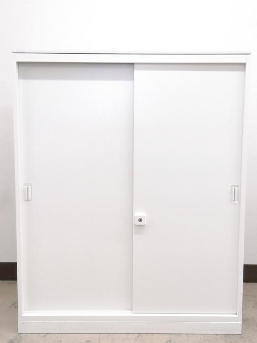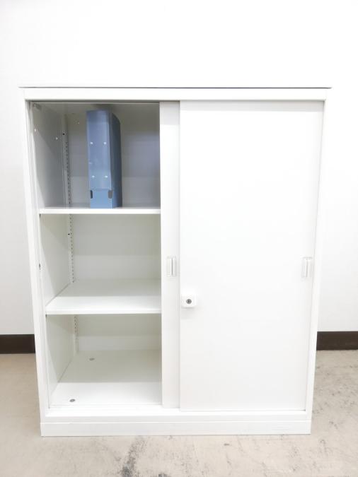スライド式の扉のため導線を邪魔しません!使い勝手抜群の2枚引き違い書庫が入荷! ■オカムラ/レクトライン/ホワイト 2枚引き戸