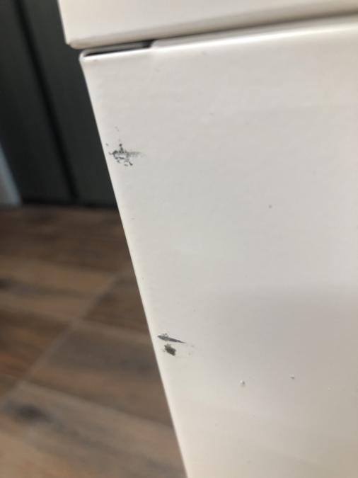 - 目立つ箇所複数あり深い傷・凹みが商品全体にある。(例、天板、正面、背後、サイド部分にある。)
