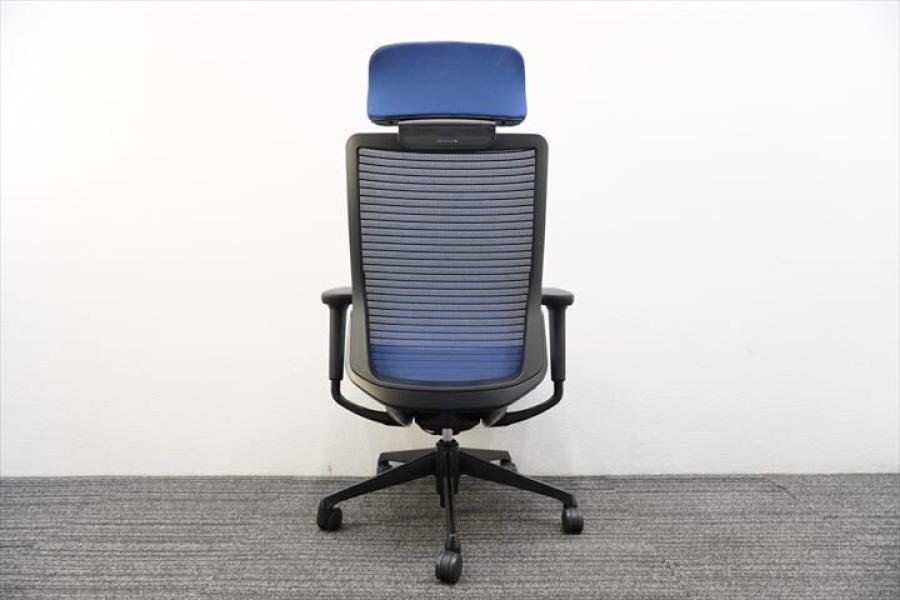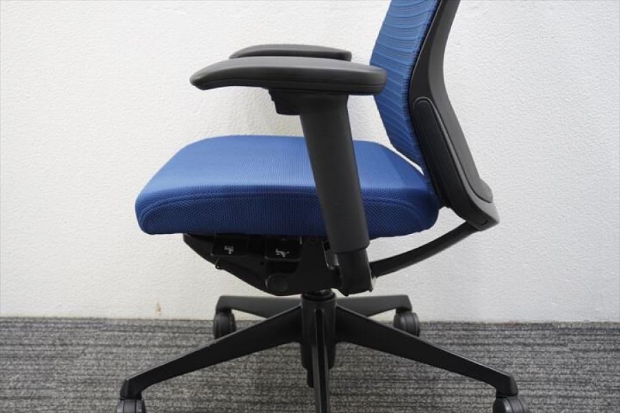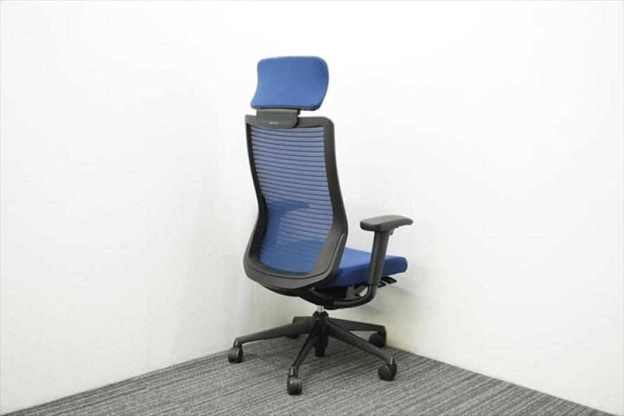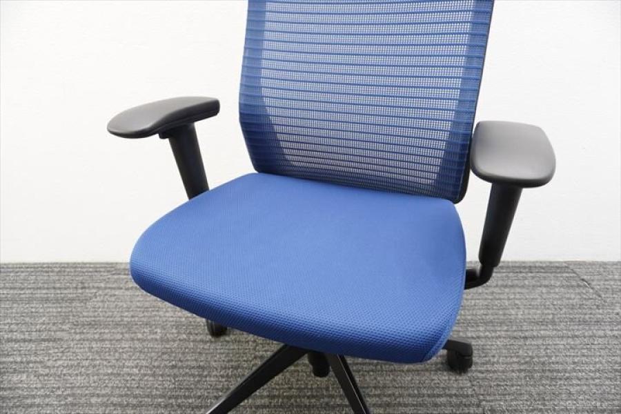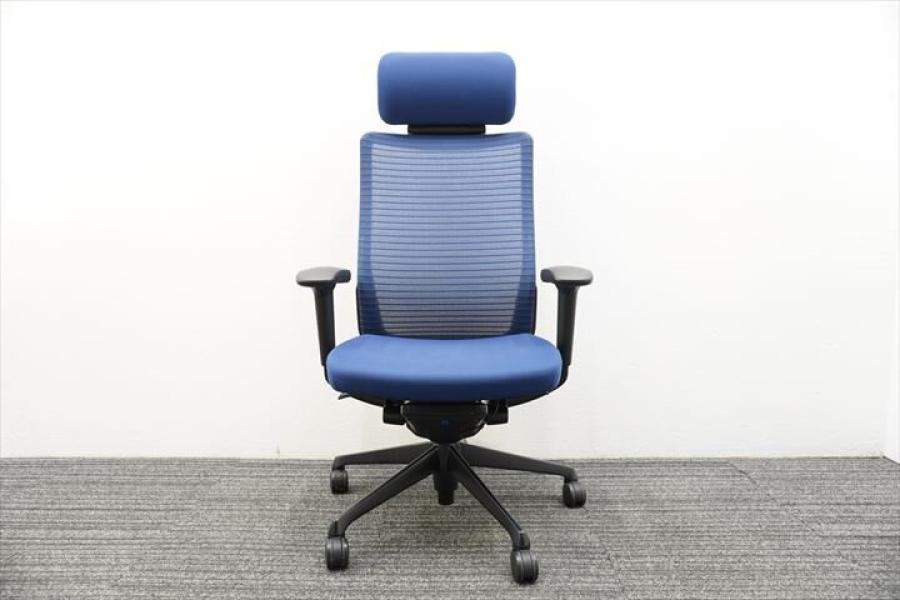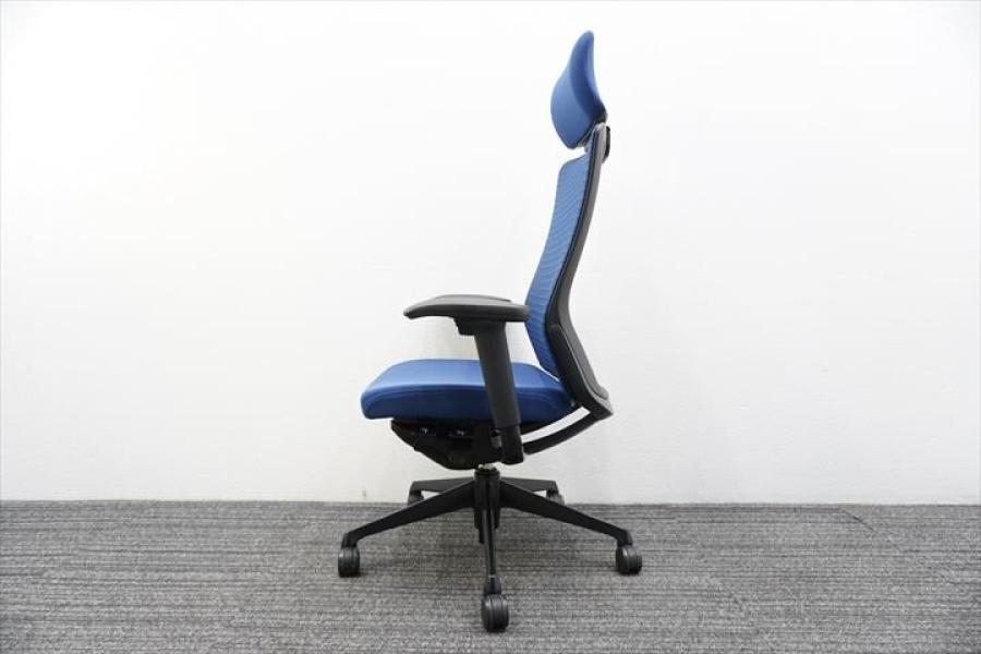 シンプルでオシャレなスタイリングのチェア! ヘッドレスト オカムラ コーラル ブルー 可動肘【中部地方庫】【TI】- 新大阪店