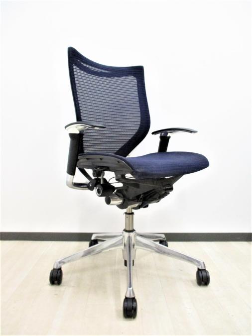 【ラスト1脚!】オカムラ/バロン/ネイビーブルー/座面メッシュ/ポリッシュフレーム/稼働肘- 春日部・越谷店