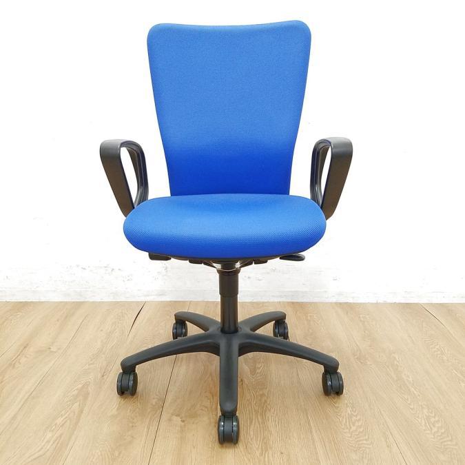 【残り1脚!】定番のオカムラ製のチェアが入荷!厚めのクッションで座り心地抜群! ■オカムラ/カロッツァ/ブルー ブラックシェル リング肘- 立川・八王子店