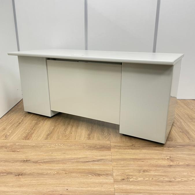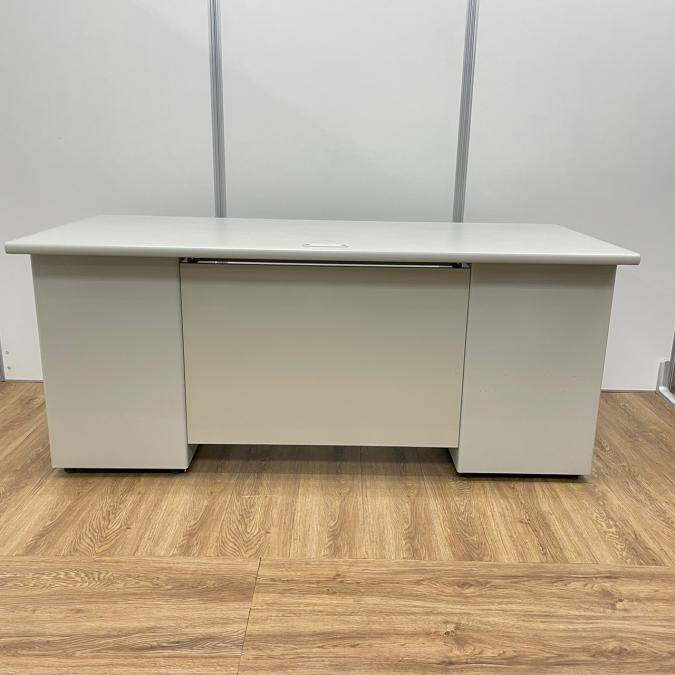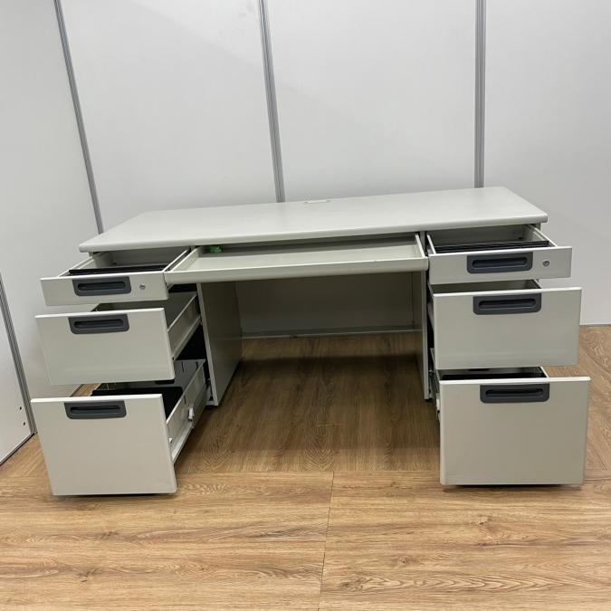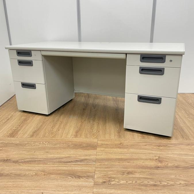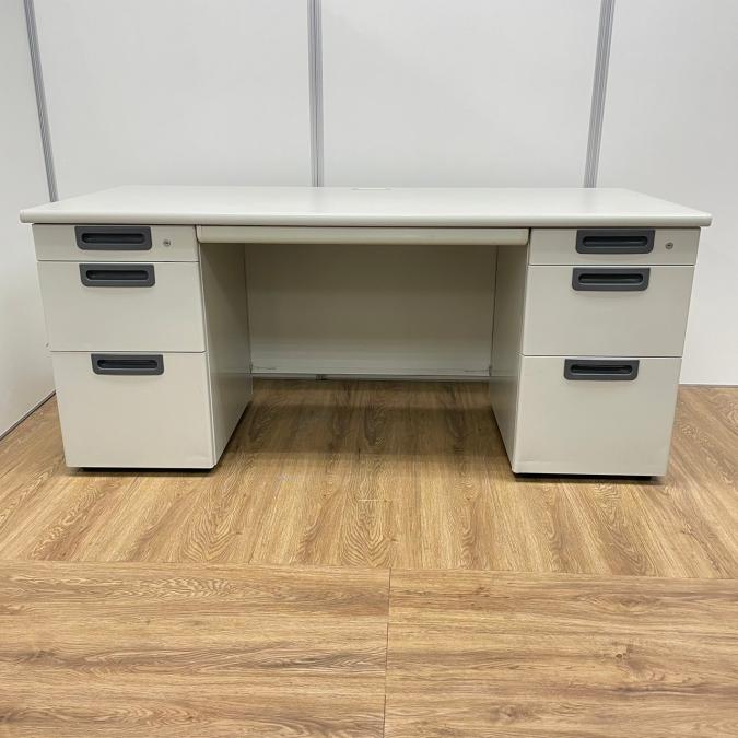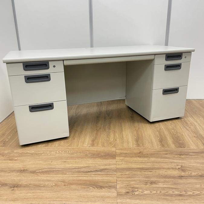 【現品限り】プラス製 LAシリーズ ニューグレー 珍しいW1600 両袖机!!※現物画像※- 京都東寺店