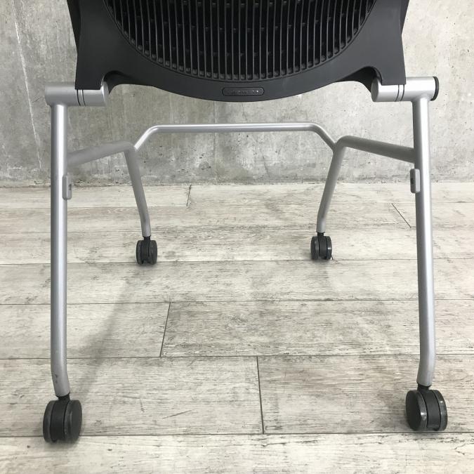 【しなやかにワーカーを受け止める洗練されたデザイン!使わない時は重ねて収納可能!】■オカムラ(okamura)製 グラータ (Grata) 肘無し ミーティングチェア ネスティングチェア ■背面樹脂メッシュ/背パッドなし ■座面:ブラック ■キャスター付【AD】