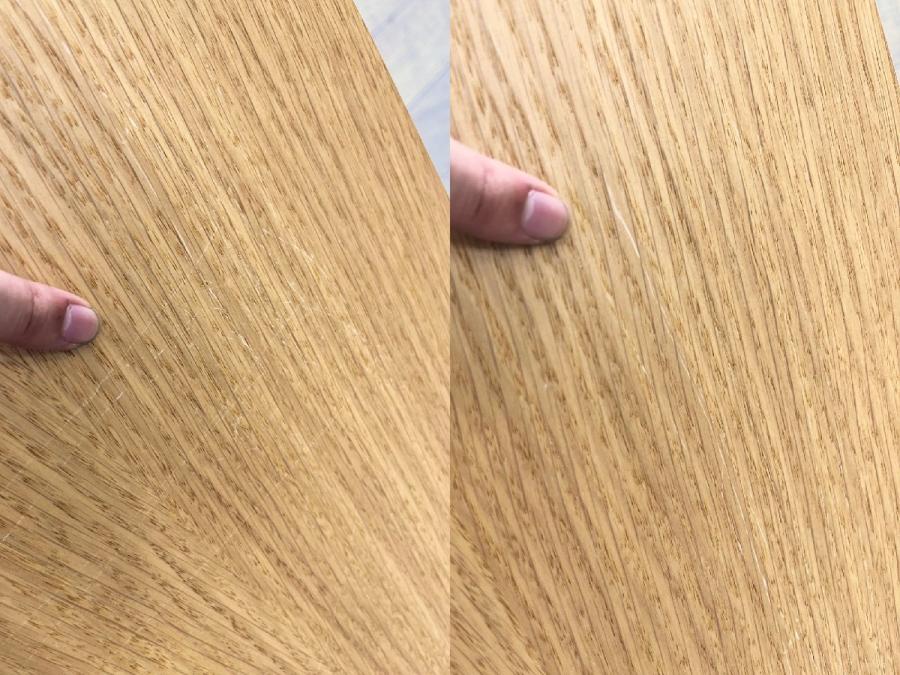 - あり黄ばみ・変色が広い範囲にうっすらある、または濃い黄ばみ・変色が一部ある。(例、天板、幕板、棚板、サイド部分、脚部等にある。)