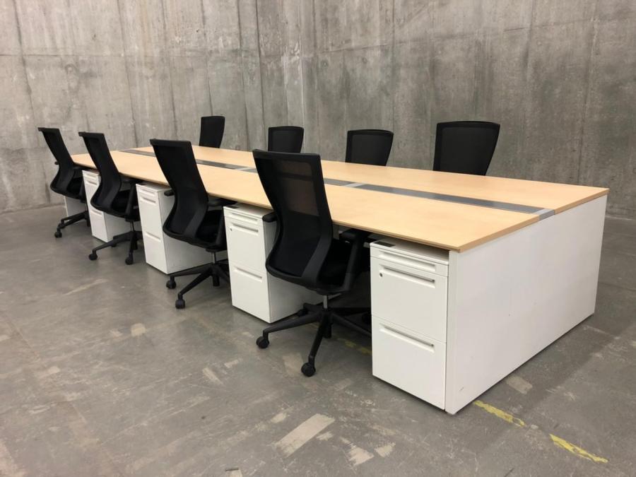 【効率的なオフィスワークを実現!】■ウチダ フリーアドレスデスク W4800×D1400mm【8名分のワークステーション!】 人気のナチュラル木目カラー【関東倉庫在庫品】
