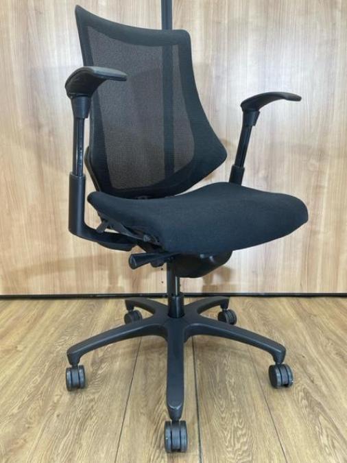 【在庫入替セール品!】【三次元フォルムが身体にしっかりフィット!】■イトーキ エフチェア 可動肘付 ブラック 背裏ストライプメッシュ ※座面に擦れ・ホツレがあるためお安く! 【ITOKI fチェア】