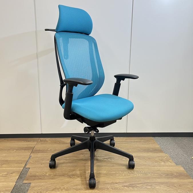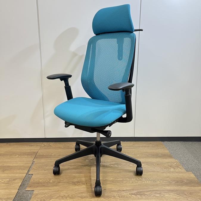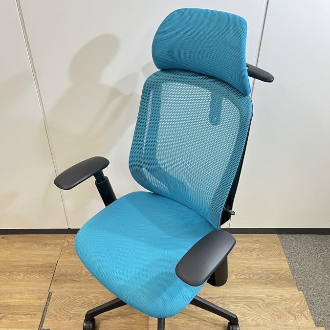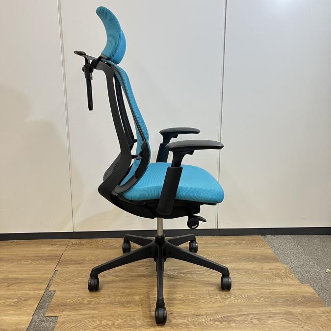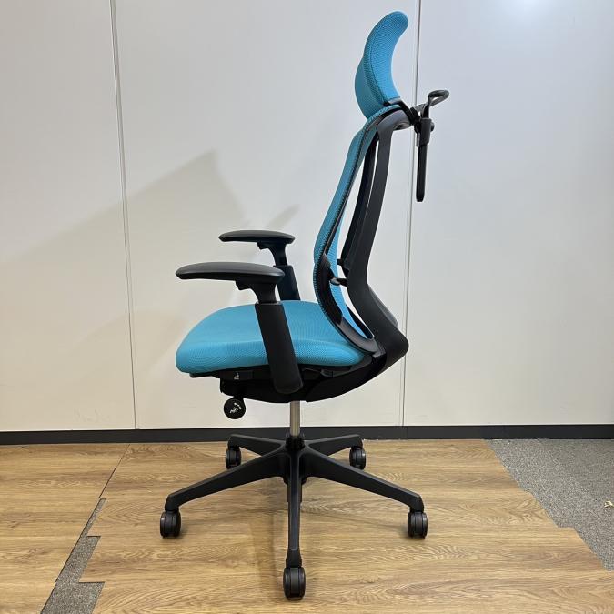 【いま人気のワーキングチェア!】■オカムラ シルフィーチェア 肘付 ブルーグリーン ヘッドレスト付 エクストラハイバック ■背のカーブを変えられる新感覚のオフィスシーティング!【Okamrua Sylphy】★