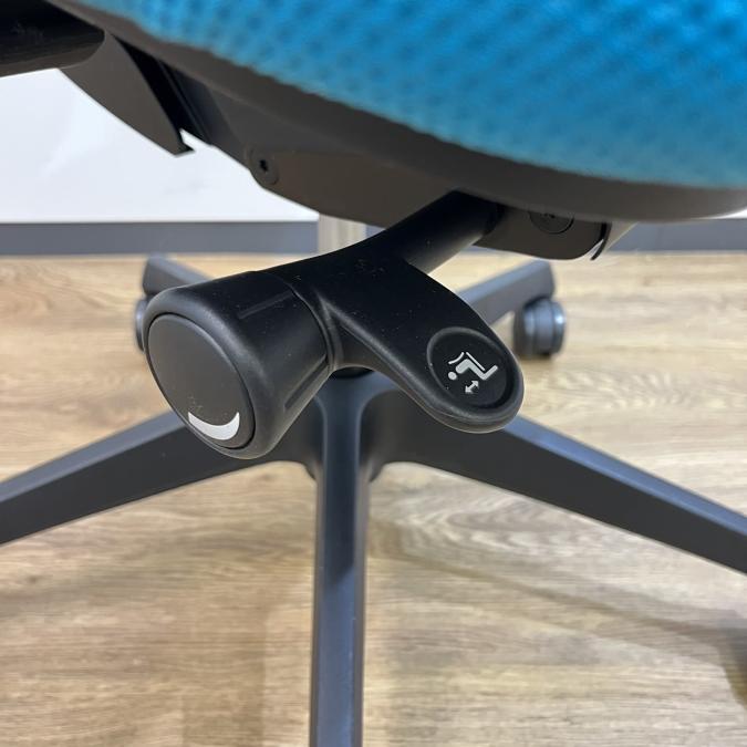 - 座面右下のダイヤル操作で、リクライニングの強弱調整が行えます。これまでのダイヤル式よりも、少ない回転数で、最弱?最強の調整が可能です。