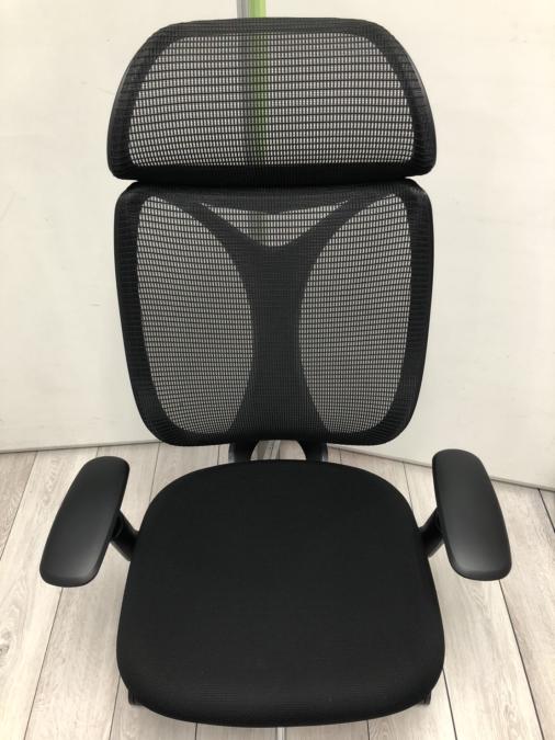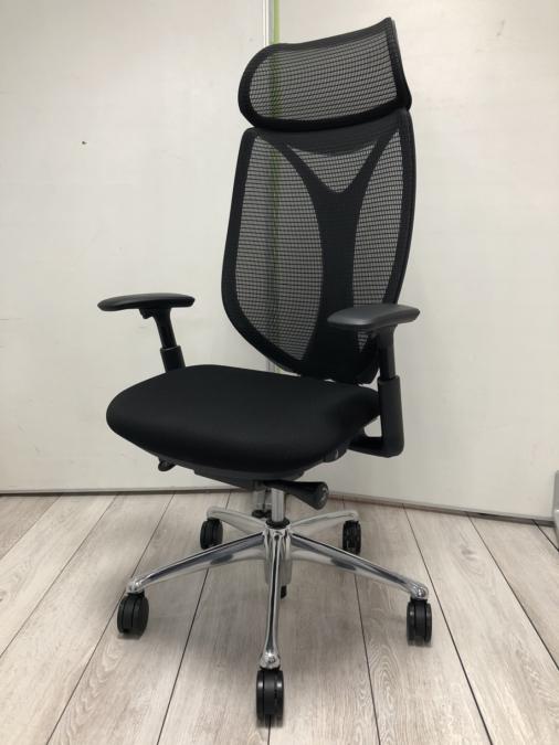 【前傾チルト付・流れるような美しいフォルムの最高級メッシュチェア!】■オカムラ(okamura)製 サブリナ(Sabrina) 肘付き エクストラハイバックチェア 背面メッシュ ■可動肘・ヘッドレスト・ハンガー付き ■ブラック【オフィスにもご自宅用にも人気の一品!】