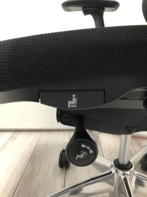 座面左下のレバー操作により、前後に50mmスライドできます。