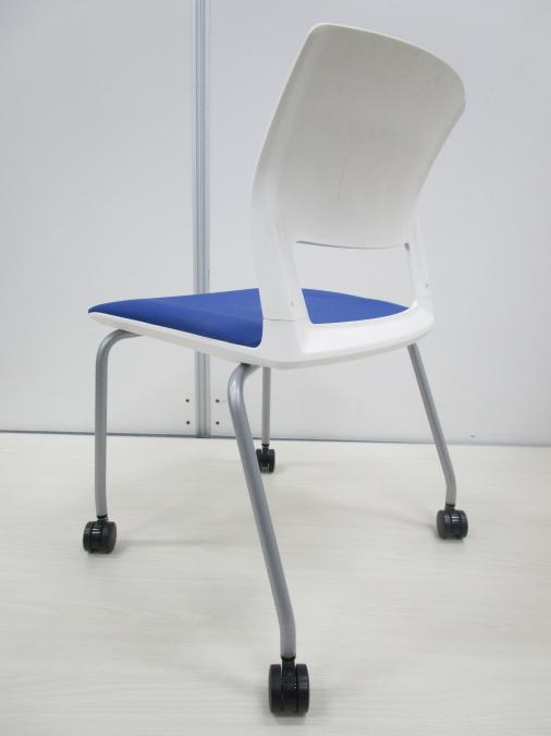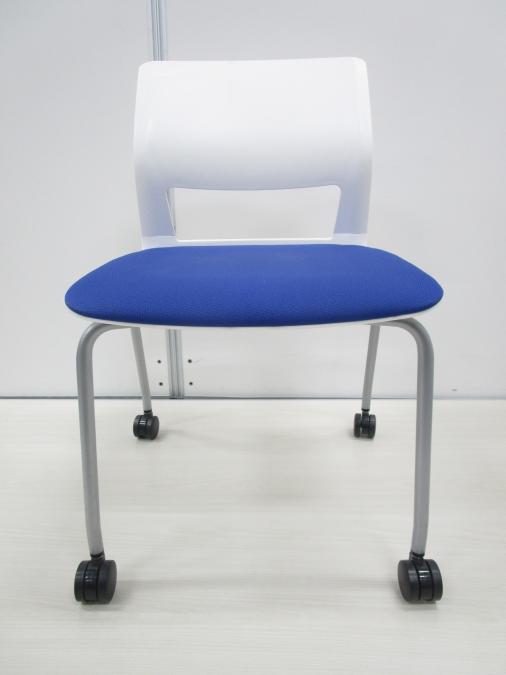 【明るく軽快なデザイン!】■コクヨ製 スタッキングチェア ブルー ■スイスイ動かせるキャスター付!- 品川・三田店