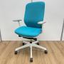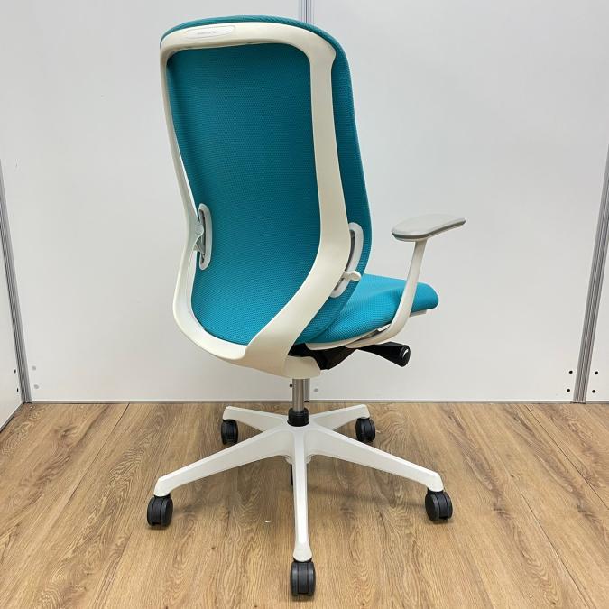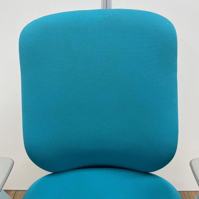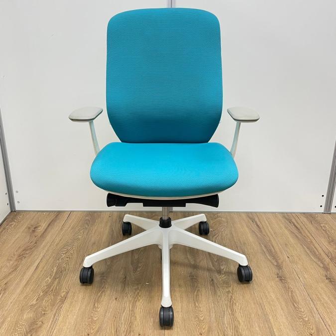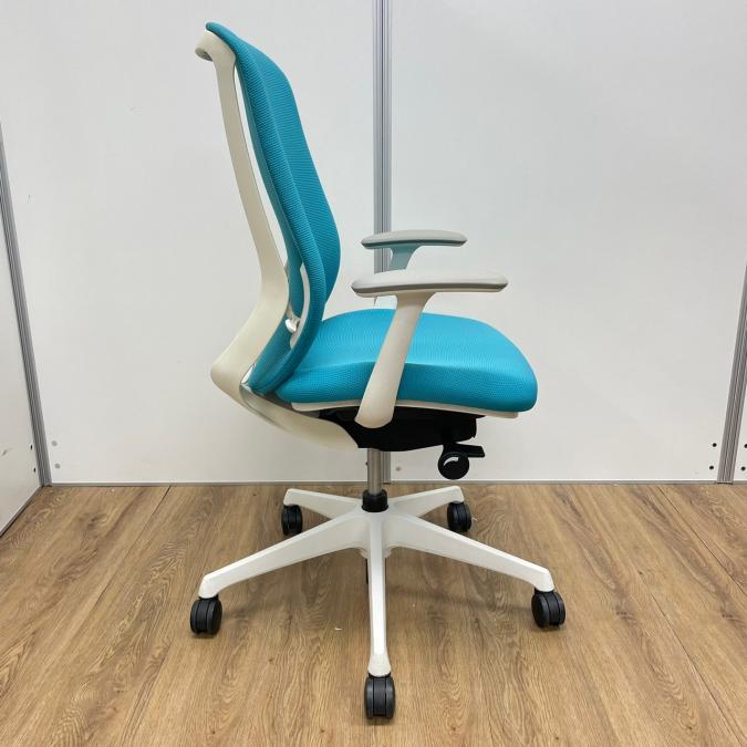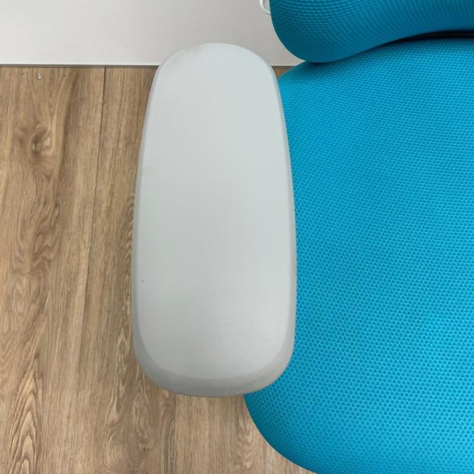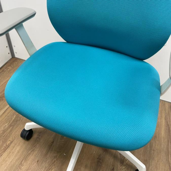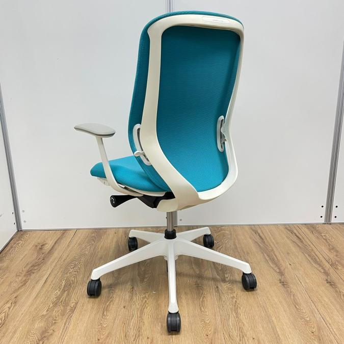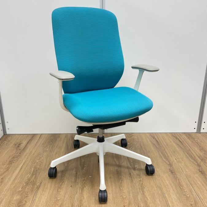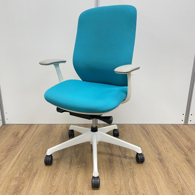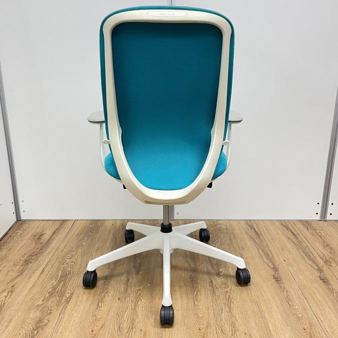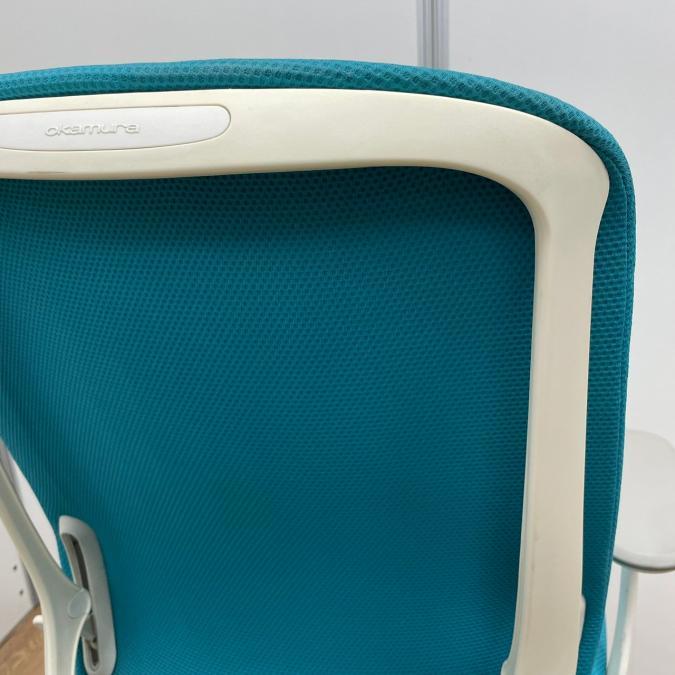 【クリーニング済み】オカムラ製 シルフィーシリーズ ブルーグリーンカラー 固定肘 肘付きハイバックチェア!!※背もたれフレーム日焼けあり- 京都東寺店