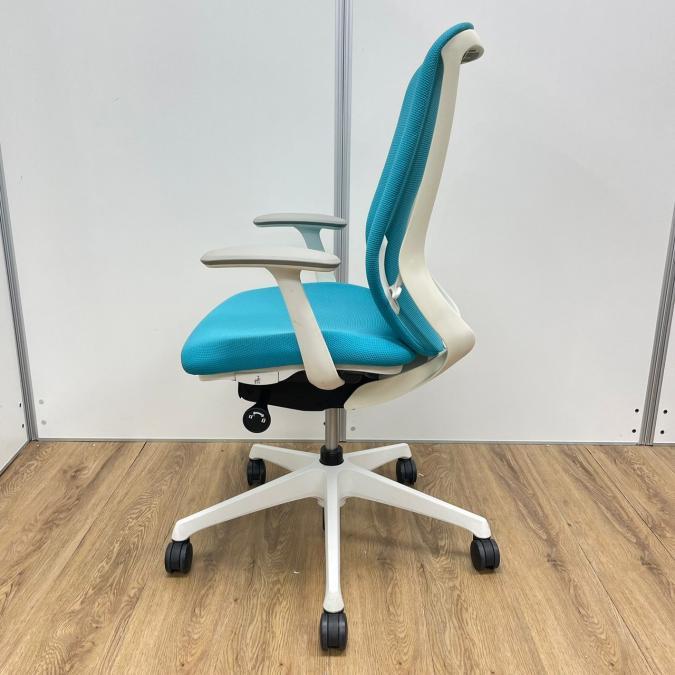 【いま人気のワーキングチェア!】■オカムラ シルフィーチェア 肘付 ブルーグリーン ヘッドレスト付 エクストラハイバック ■背のカーブを変えられる新感覚のオフィスシーティング!【Okamrua Sylphy】★