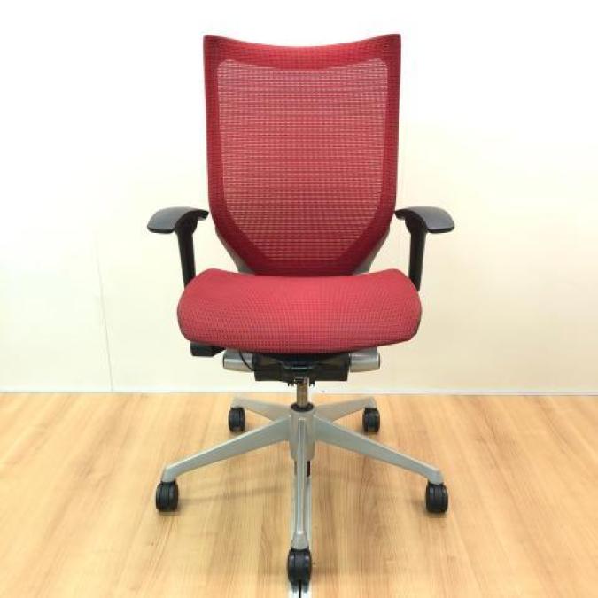 【まとめて揃います!】【肘付オフィスチェア】オカムラ(okamura)バロンチェア メッシュ仕様 ■色:レッド 座面メッシュ 可動肘