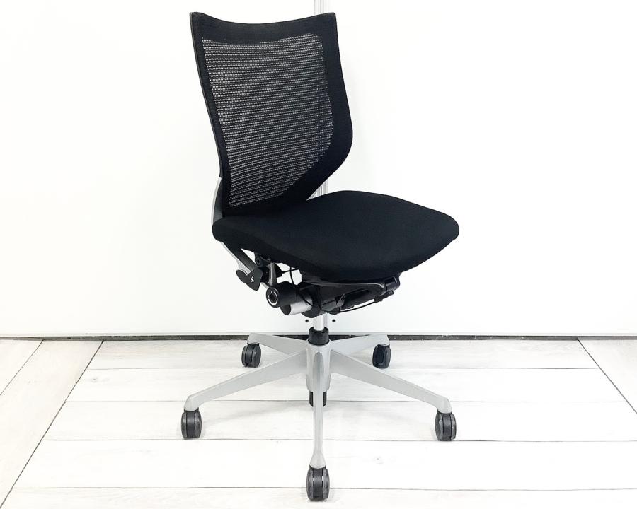 【ベストなポジションが得られる先進設計!長時間の着座でも疲れにくいサポート感!】■オカムラ(okamura)製 バロンチェア(Baron) 肘無し ローバック 背面メッシュ ■ブラック