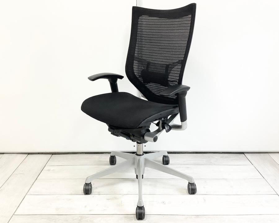 【長時間の着座でも疲れにくい!ベストなポジションが得られる先進設計!】■オカムラ バロンチェア 肘付 ブラック ハイバック シルバーフレーム ■良い椅子は腰を守る投資です!【Okamura Baron】