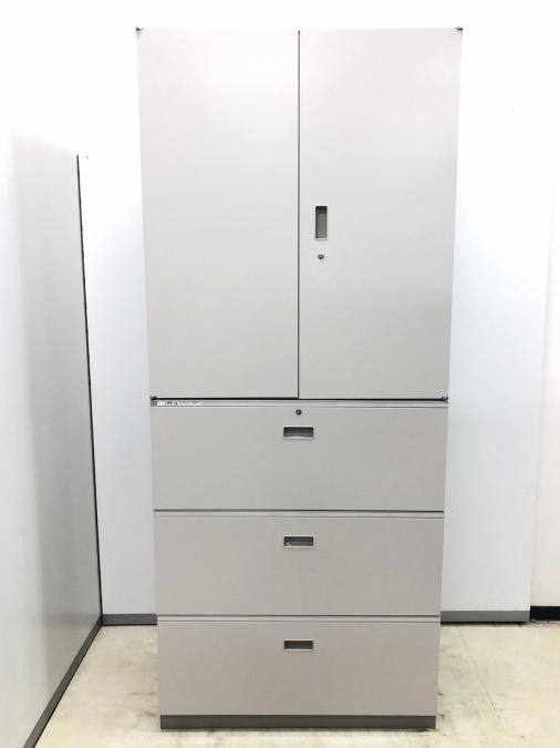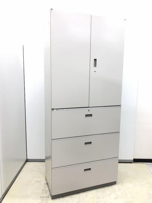 【倉庫在庫品】【これ1台で書類整理の問題が解決!上下で6段分の大容量収納!】■イトーキ (ITOKI)製 シンライン ハイキャビネット 両開き+3段ラテラル 書庫セット ■グレー ■シリンダー錠