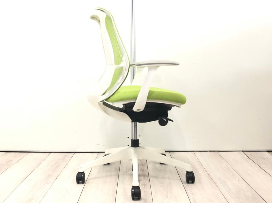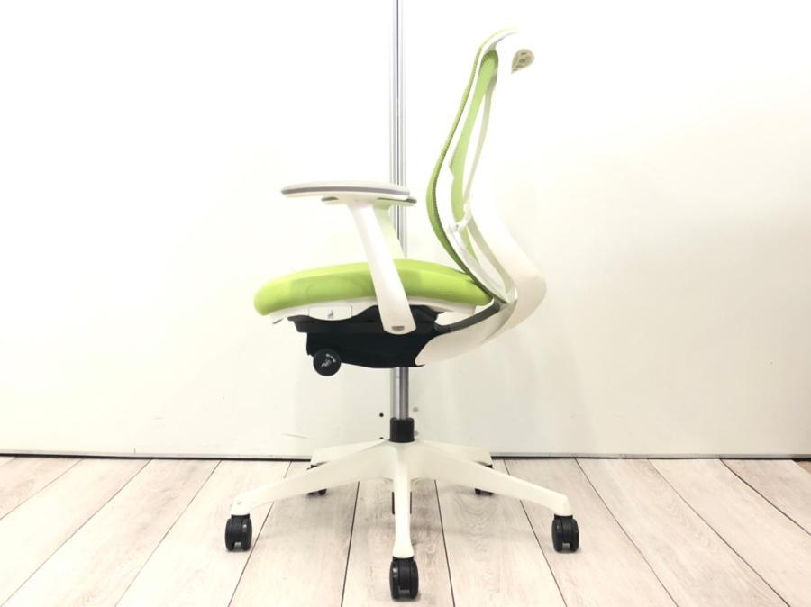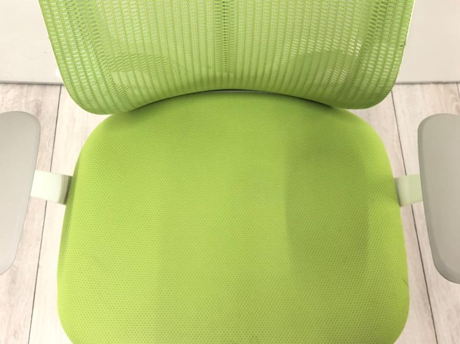 【在庫入替セール品!】年式新しめ!鮮やかなカラーとメッシュ仕様!前傾機能付きで優秀※固定肘掛け付き■オカムラ/シルフィー/ライムグリーンサーキュラーバリューCO2削減量の算出について