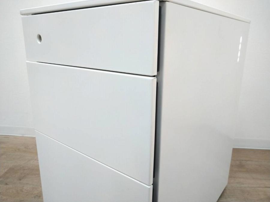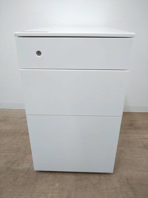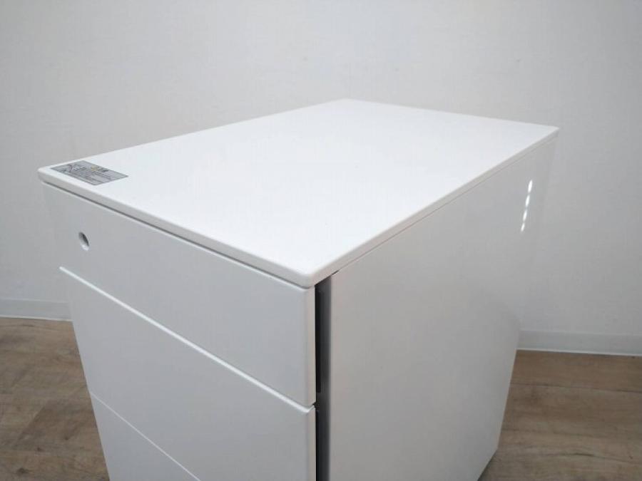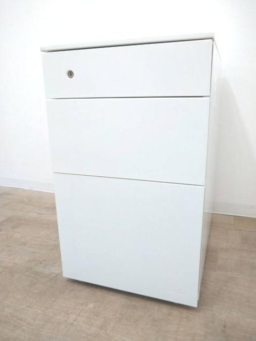 ☆H650mm!【スタイリッシュなデザインで使いやすい!】■オカムラ製 3段ワゴン ネオホワイト フロント把手 シリンダー錠 ■A4サイズのファイルもたっぷり収納できる!【ハイワゴン】