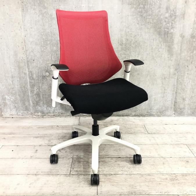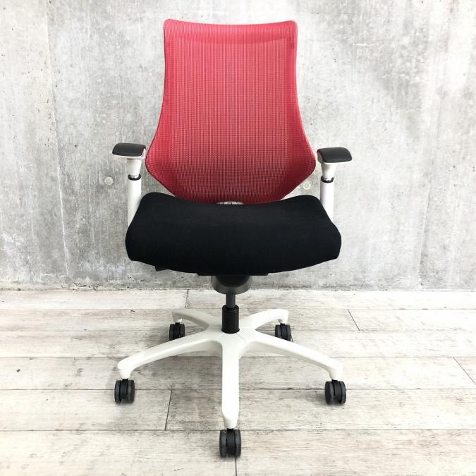 イトーキ製の大人気シリーズ、エフチェアがメッシュ仕様で入荷!背面レッド×座面ブラック×フレームホワイト仕様! ■イトーキ/エフ メッシュ/ラズベリーレッド- 立川・八王子店