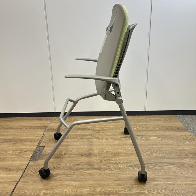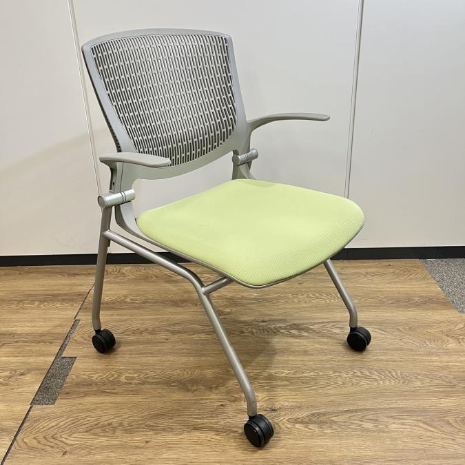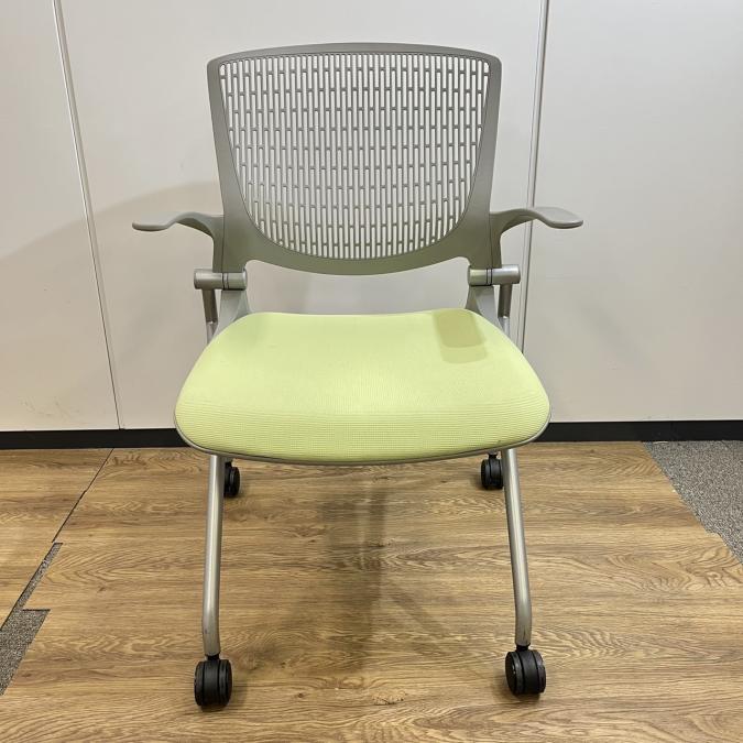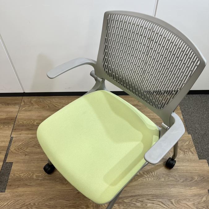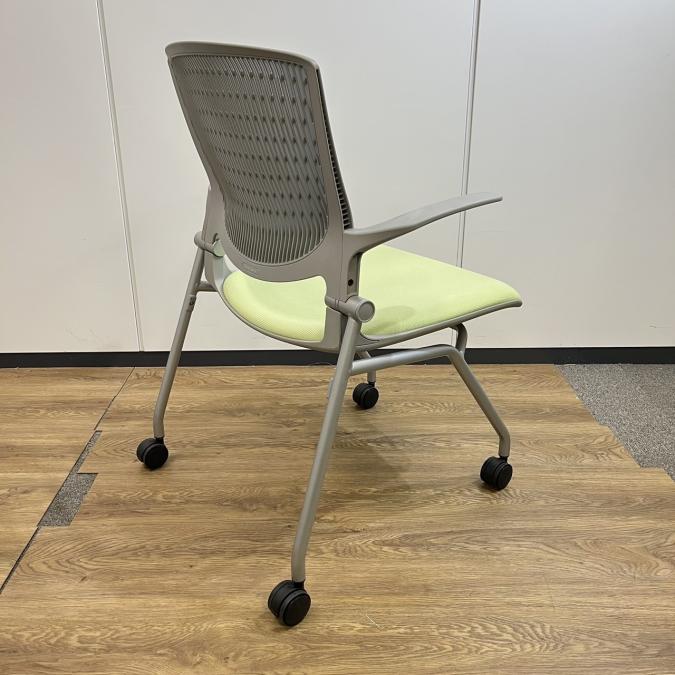 【在庫セール品・8脚限定】【T10】■オカムラ(okamura)製 グラータ (Grata) 肘無しミーティングチェア ネスティングチェア ■背面樹脂メッシュ ■座面:グリーン【スリット構造のシェルがワーカーを軽やかに受け止める!】