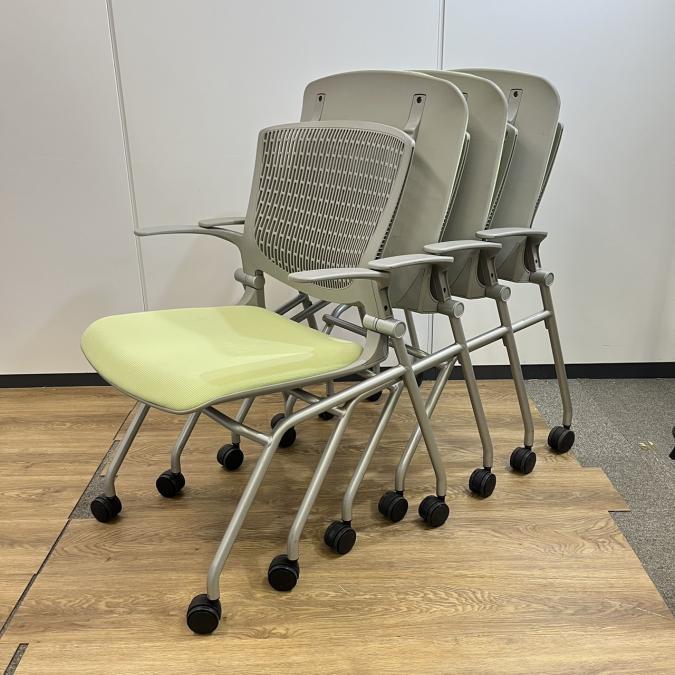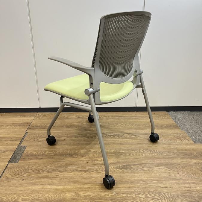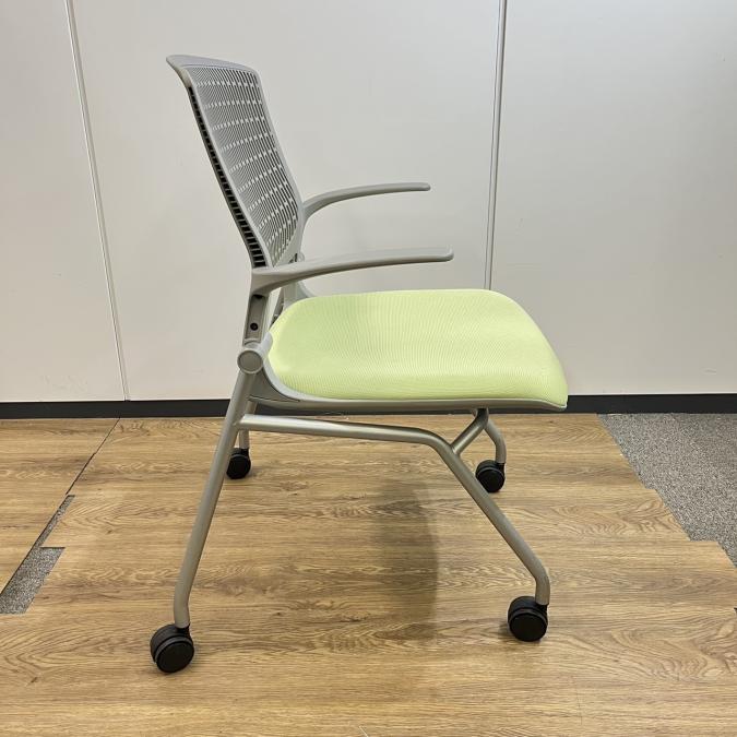 【在庫セール品・4脚限定】【T11】■オカムラ(okamura)製 グラータ (Grata) 肘無しミーティングチェア ネスティングチェア ■背面樹脂メッシュ ■座面:グリーン【スリット構造のシェルがワーカーを軽やかに受け止める!】