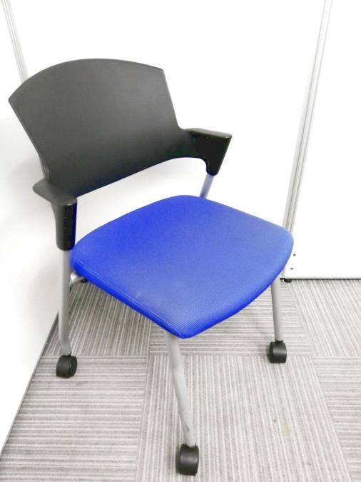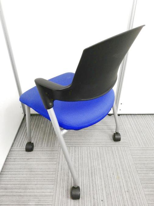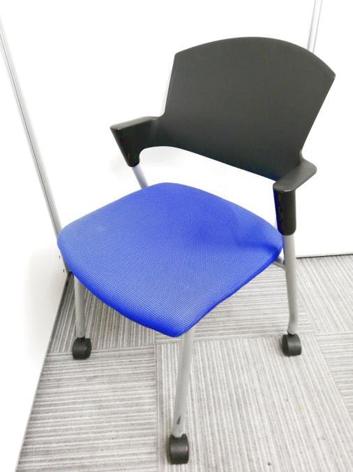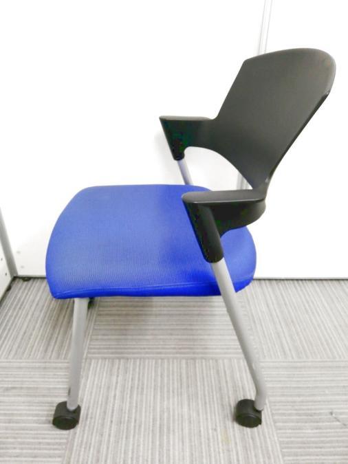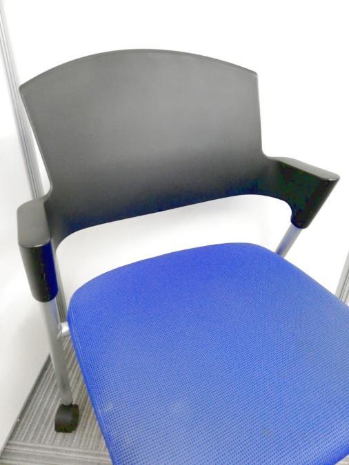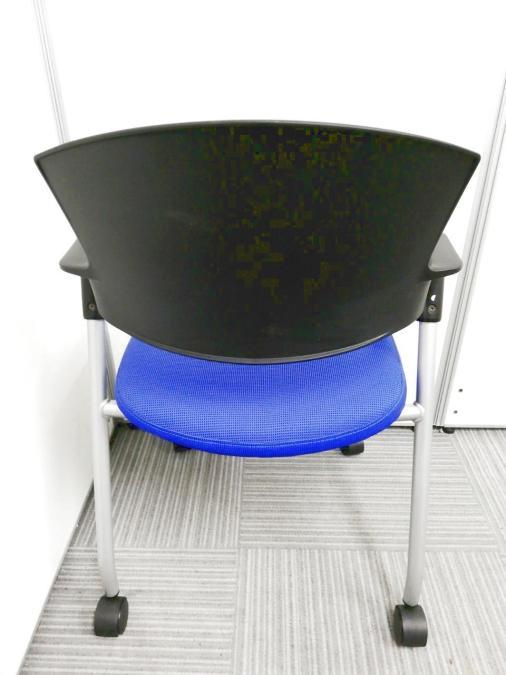 【シンプルスマートなスタッキングチェア!分厚いクッションで長時間でも快適な座り心地!】■コクヨ(KOKUYO)製 プロッティ (Protty) 肘付 ミーテイングチェア スタッキングチェア ■固定肘 ■ブルー×ブラック ■背面ヌードタイプ