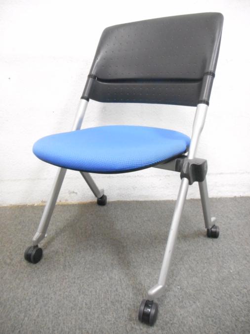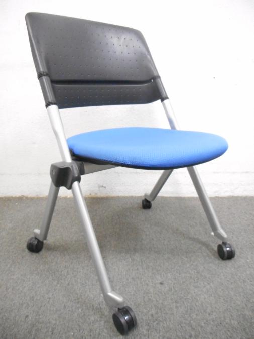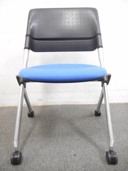 【スムーズに動くキャスター付!】■オカムラ製 リータ(LITA) スタッキングチェア ブルー ■コレは便利!スタッキング&ネスティング両方対応!- 茨城南店