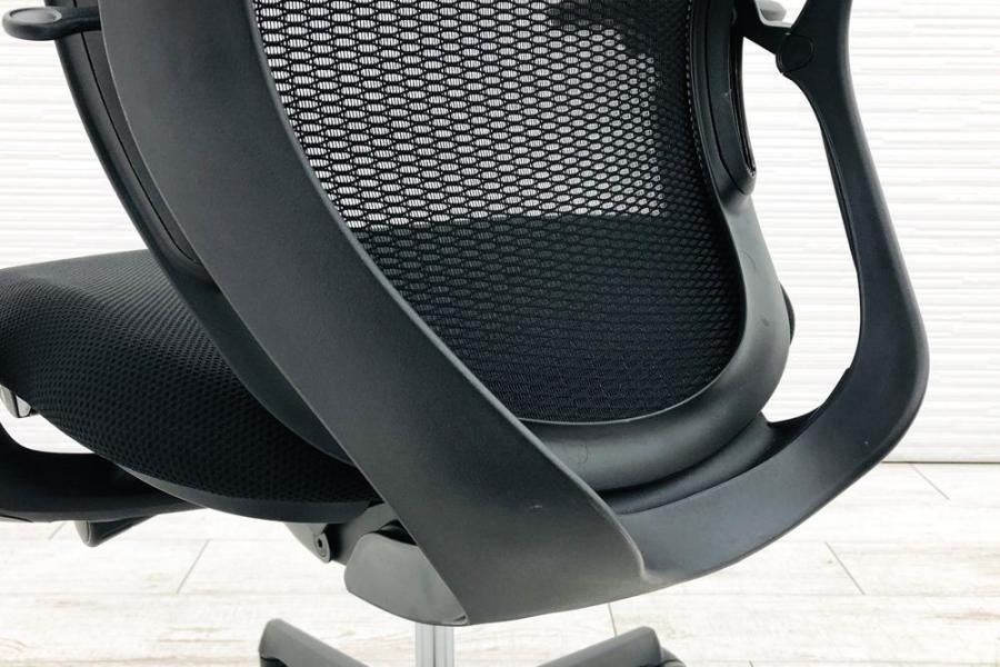 【限定1脚】【三次元曲面が身体にフィット!前傾チルト機能付き大人気メッシュチェア!】■オカムラ(okamura)製 シルフィーチェア(Sylphy) 肘付きハイバック ■背面メッシュ ■可動肘 ■ブラック×ブラックシェル ■ランバーサポート付き