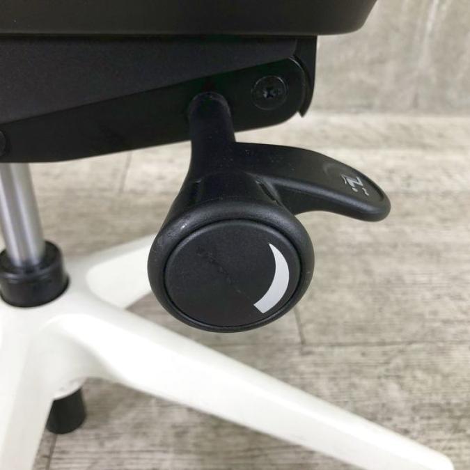 - 座面左下のダイヤルでリクライニングの固定と解除が行えます。 前傾ポジションをとることも可能です。
