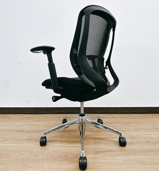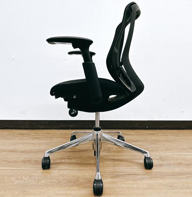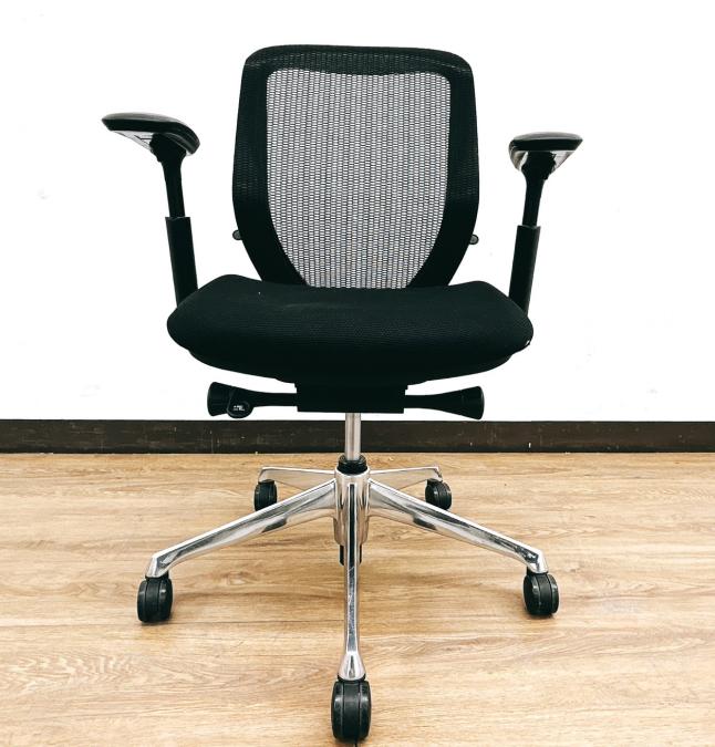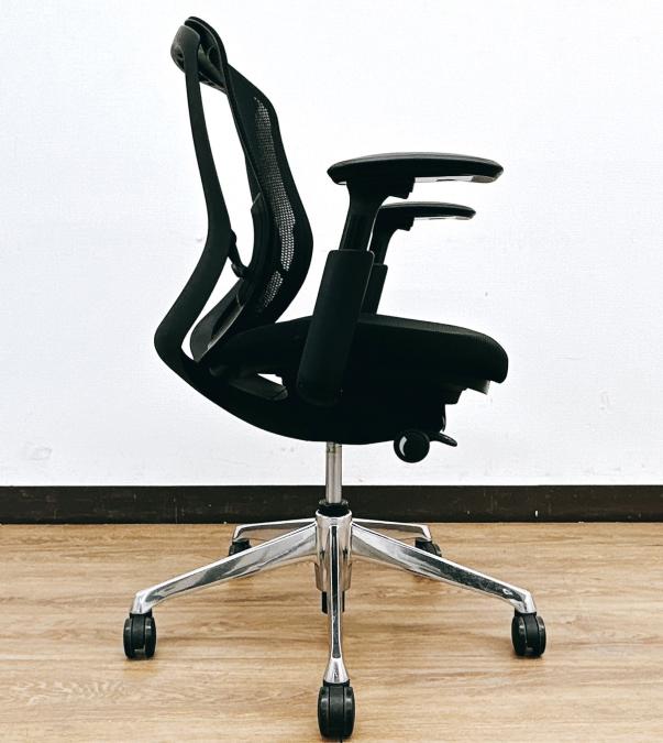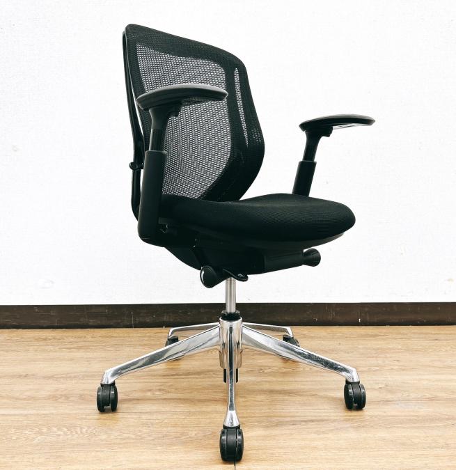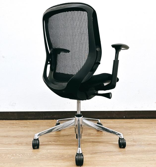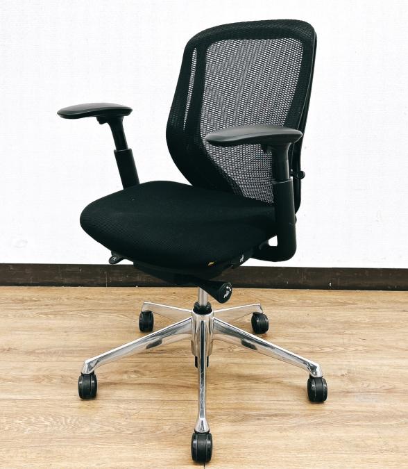 【限定1脚入荷】【シート端に小さいやぶれあり・状態要確認】前傾姿勢OK!人気ブラックシルフィー(Sylphy)ローバックタイプ⇒可動肘掛け&ポリッシュ脚仕様◆オカムラ製【RP】- 埼玉本店