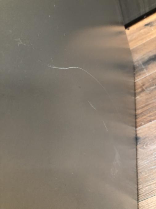 - 目立つ箇所あり傷・凹みが多数、深い傷・凹みが一部ある。(例、天板、正面、背後、サイド部分にある。)